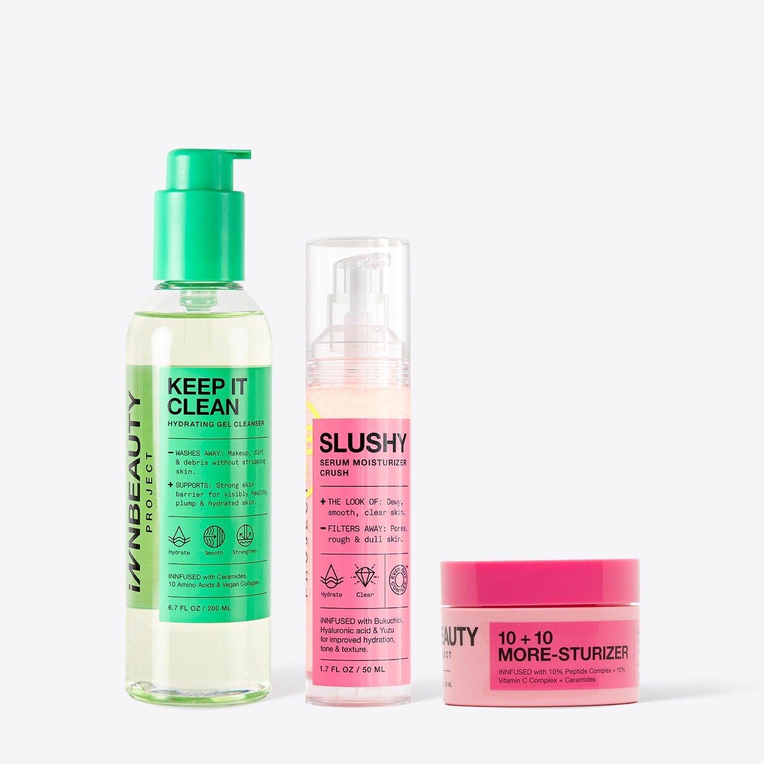 10+10 goes above and beyond a typical moisturizer. This pH balanced formula is jam-packed with science-backed, skin transforming ingredients including two types of Vitamin C, Peptides, Ceramides, & Vegan Squalane that deliver the appearance of a brighter, firmer, more bouncy complexion.