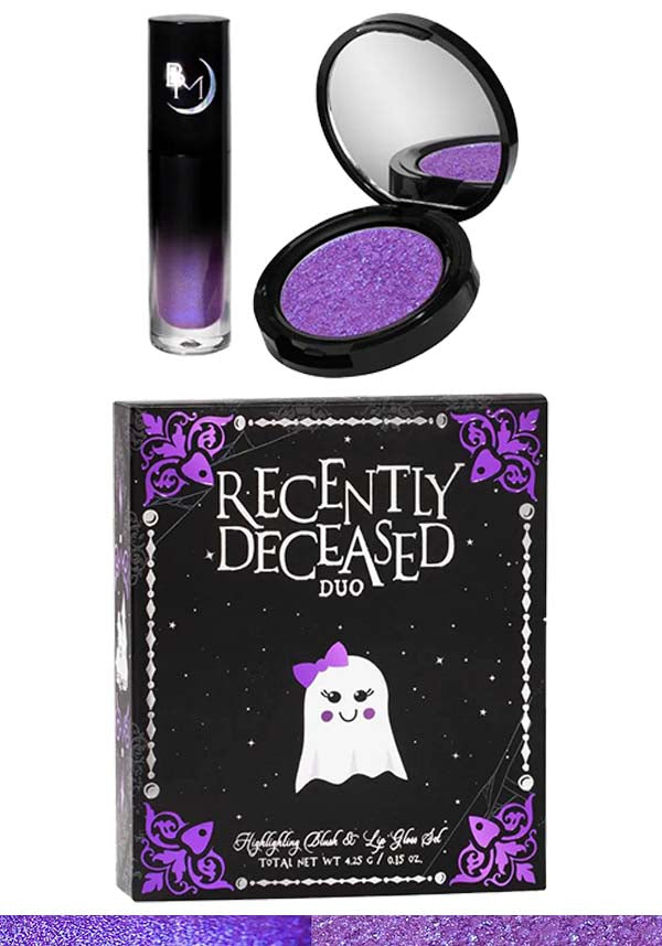 Leave your unfinished business at the door and step into the afterlife with our Limited Edition Recently Deceased Duo 👻 This spooky cute pair is haunted by a mini Apparition lip gloss in Black Moon's brand new formula and a spooktacular Ghoulie highlighting blush! Pair them together for a spiritual experience 👻